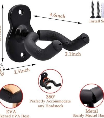 Guitar Wall Mount Hanger 2 Pack Hook Black Metal Guitar Holder