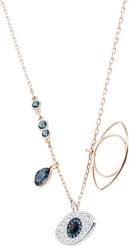 - Items delivered: 1x Swarovski Symbolic Collection Evil Eye Pendant, 38cm rose-gold tone plated chain with blue, black and clear crystal pave, supplied in a Swarovski necklace box