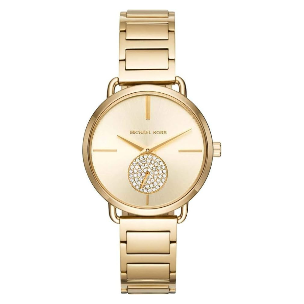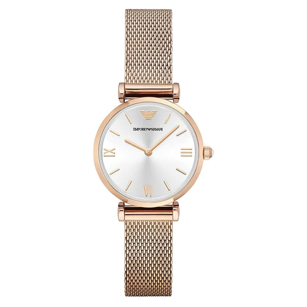 - Mineral crystal lens; Matte green dial with rose gold-tone hands and Roman numerals; Printed outer and inner minute tracks