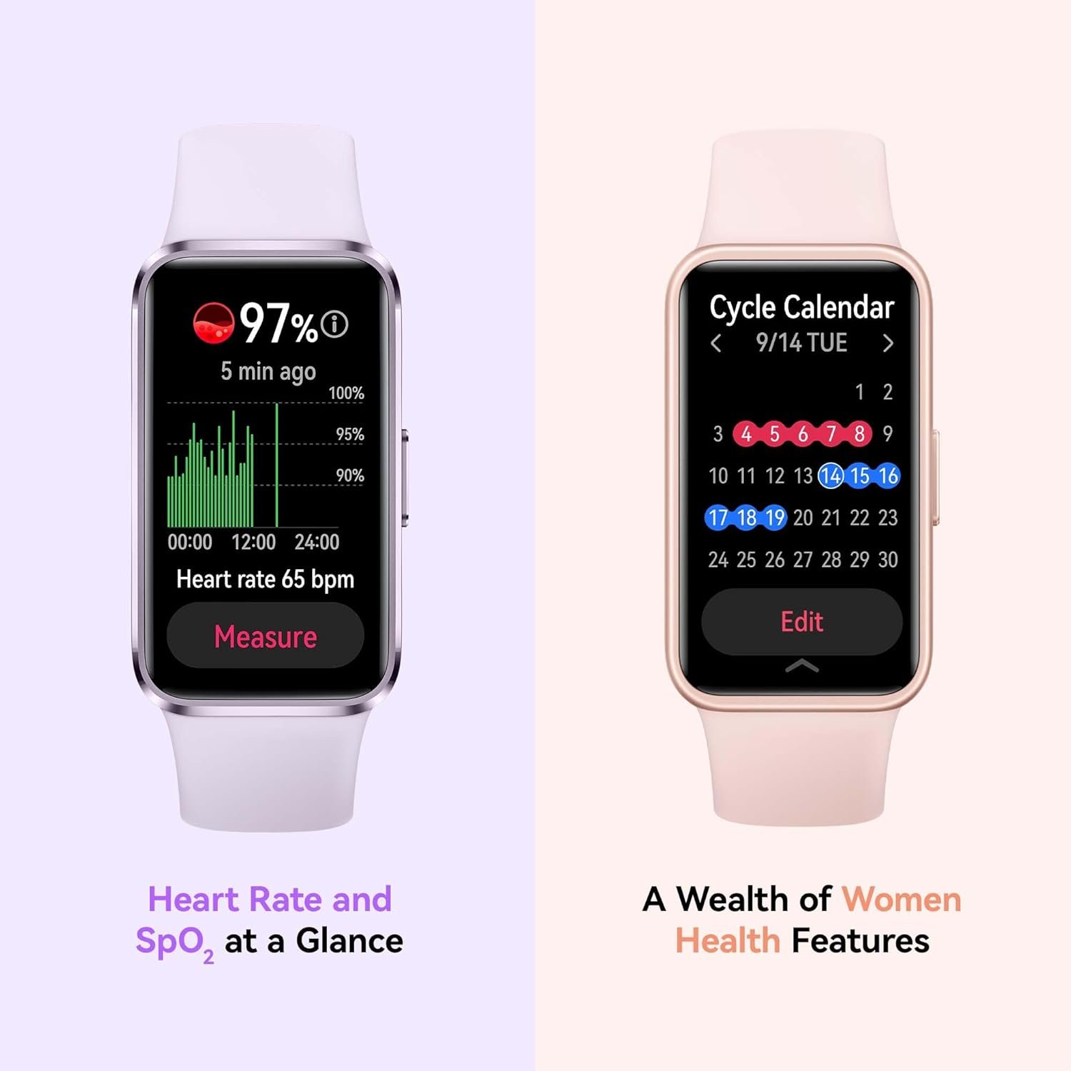 - AI-powered Fitness Monitoring: Powered by an advanced 9-axis sensor and AI-enhanced stroke identification technology, HUAWEI Band 10 provides a wealth of data for 100 sports modes, including ultra-accurate swimming data
