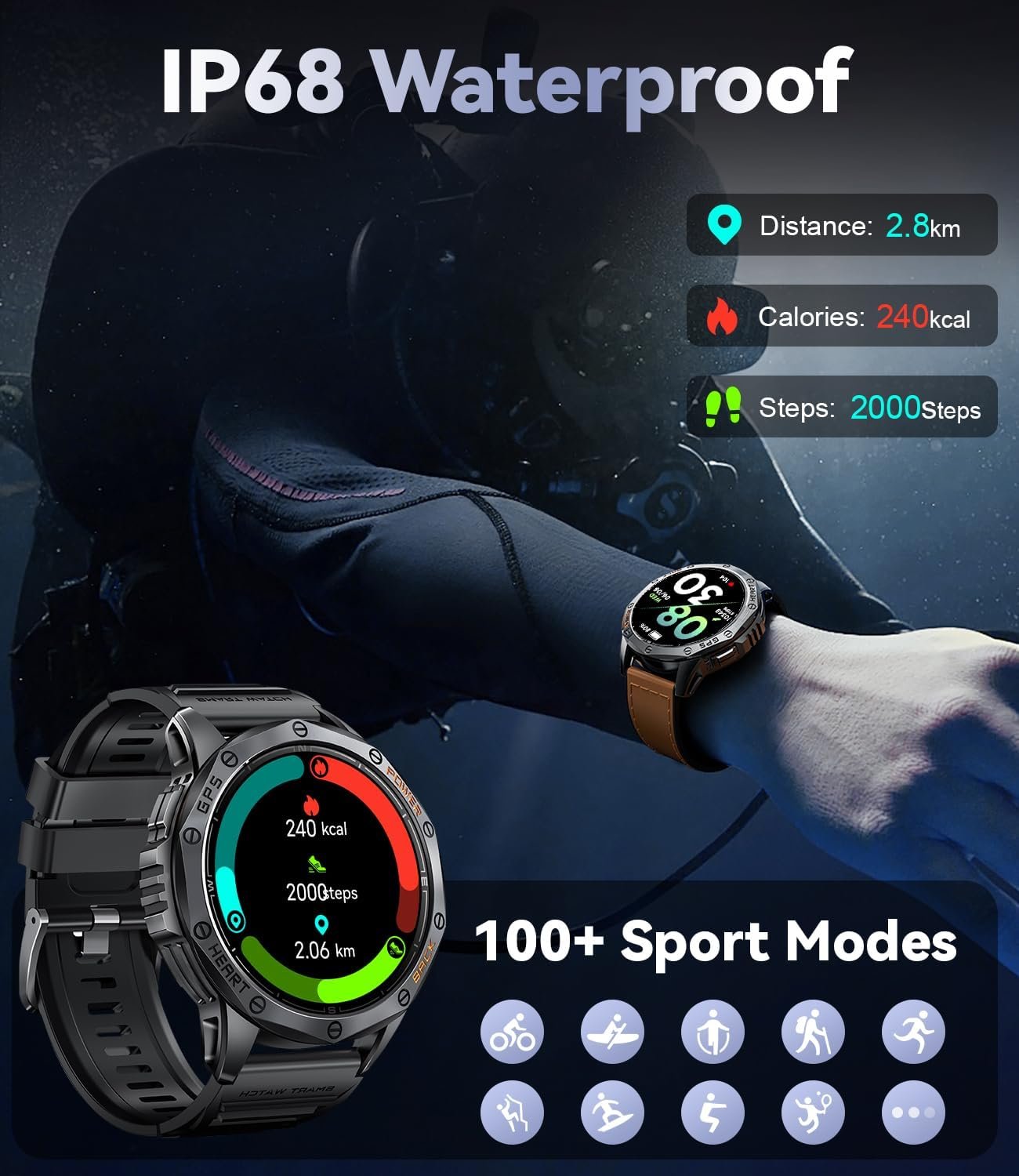 - 180 Sports Modes & Everyday Waterproofing: Track your fitness journey with 180 different sport modes and enjoy the convenience of IP68 waterproofing. Whether you’re sweating it out at the gym or splashing in the rain, this watch is built to keep up with your active lifestyle