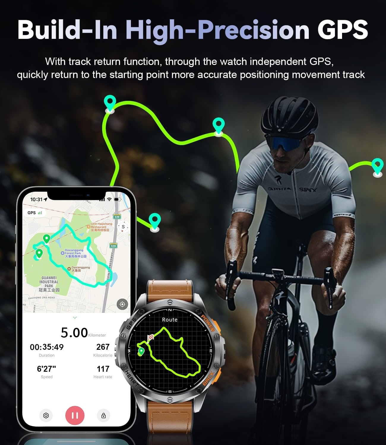 - Track and Explore with Confidence: The built-in GPS, compass, and LED flashlight make everyday adventures easier. Use GPS to record your workout routes, track your runs, or map your hikes. The compass helps you finding your way and stay oriented, and the LED flashlight ensures you’re never left in the dark—all from the convenience of your wrist