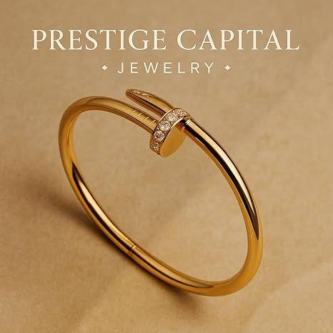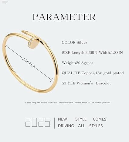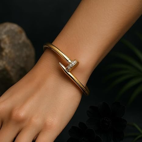- DESIGN: This women’s nail bracelet showcases a sleek, contemporary silhouette that merges bold style with classic elegance. Its polished gold finish makes it a striking accessory for any setting.