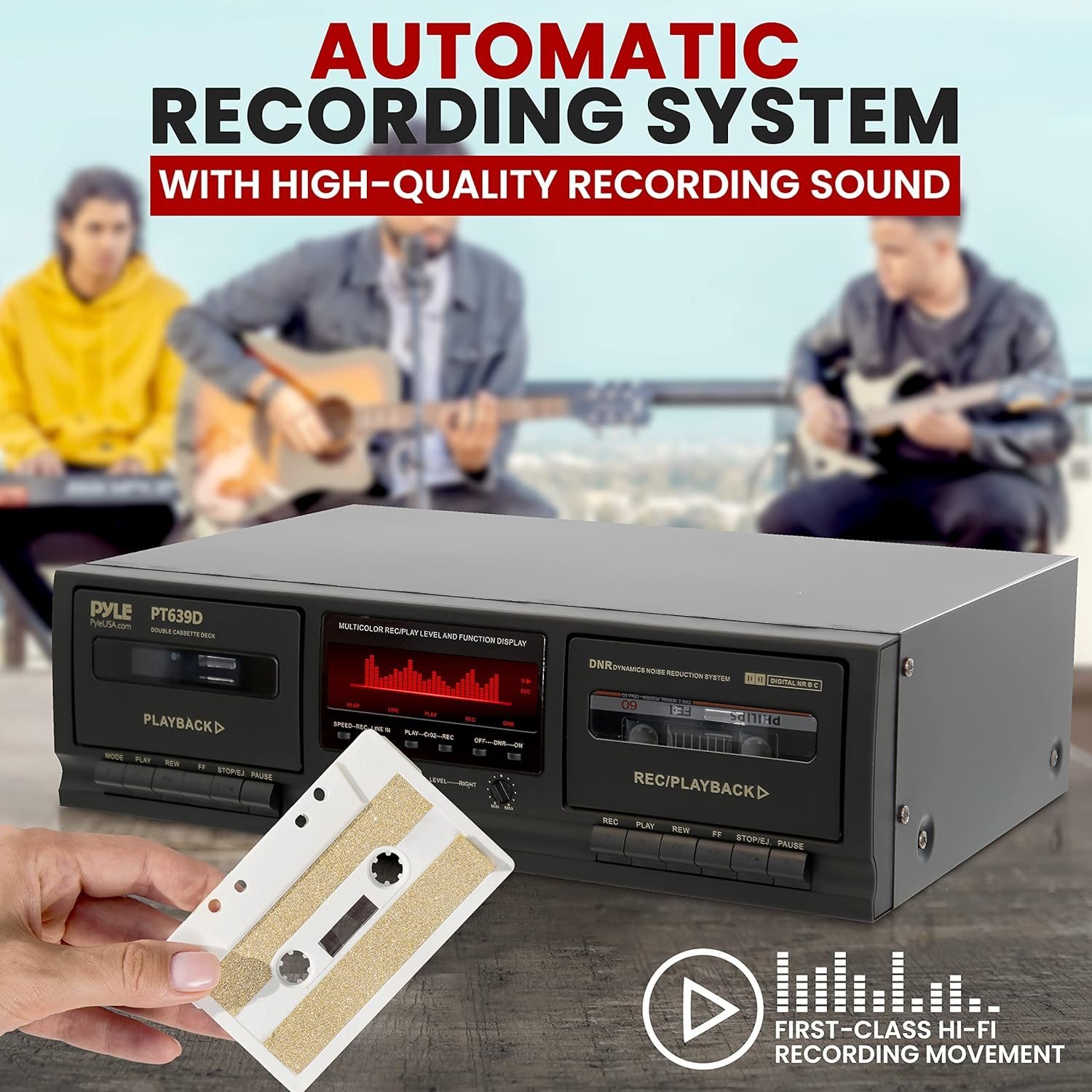 Pyle Dual Cassette Deck Stereo – Compact & Portable Hi-Fi Tape Recorder Player with Digital Professional Noise Reducing System