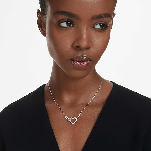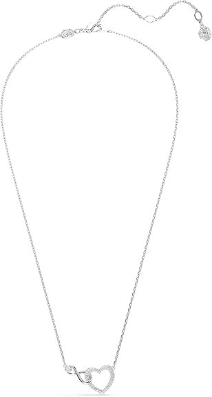 - Items Delivered: 1 x Swarovski Hyperbola pendant necklace featuring heart and infinity motif with clear pavé crystals in a rhodium-finished setting; 1 x Swarovski necklace box